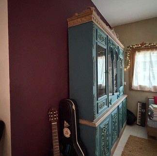 Χρησιμοποίησα την απόχρωση Vintage Tea, για να κάνει αντίθεση με το Posh Plum και να φωτίσει λίγο τον τοίχο. Και έφτιαξα αυτό τον καμβά που βλέπετε πίσω από την κιθάρα για να τον κρεμάσω στον τοίχο.